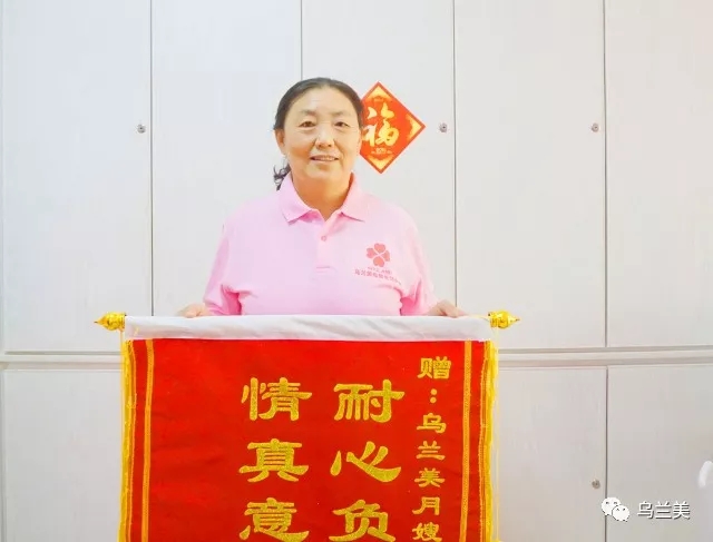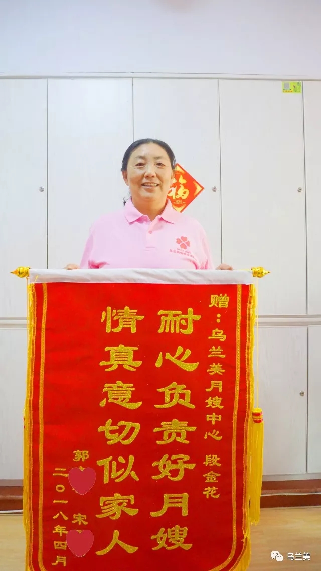 “我們清楚烏蘭美母嬰服務(wù)中心已經(jīng)收到過很多面錦旗,但是這面不同!這是一面有含金量的錦旗,它不僅僅表達了我們對烏蘭美母嬰服務(wù)中心的謝意,更是表達對烏蘭美月嫂段金花的愛意!”